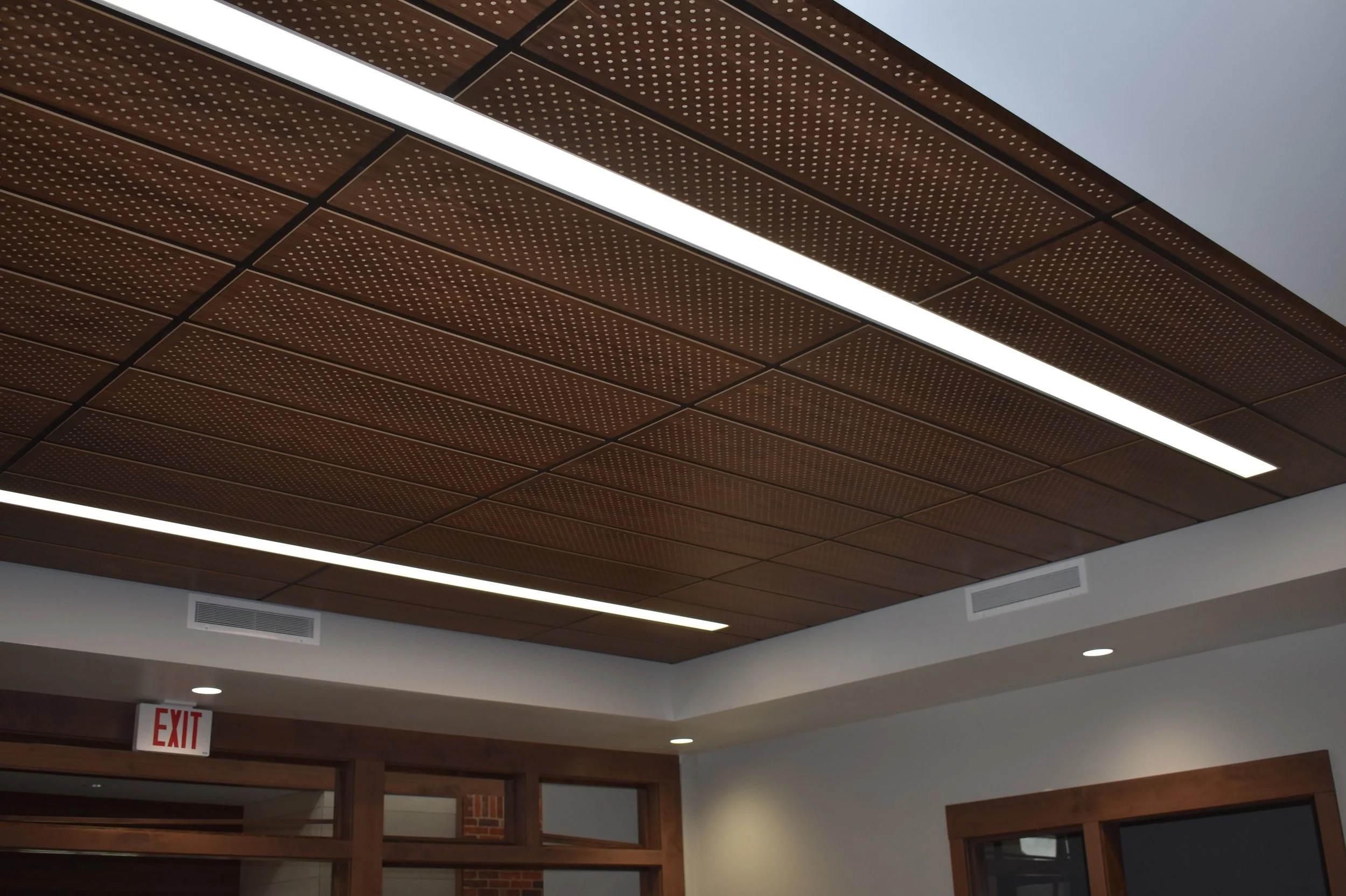 Within these areas, K&W Electric, Inc. installed decorative Axis lighting within architectural ceilings, giving it its modern look, along with Cooper/Eaton light controls which save energy with an automatic shut off. Data and technology cabling provide a public meeting conference system which allows the council chamber the ability to visually display information at council meetings. A vehicle exhaust system which incorporates a sensor that activates an evacuation fan when it detects exhaust emissions and gases, and lastly, a fire alarm system integrated throughout the building.